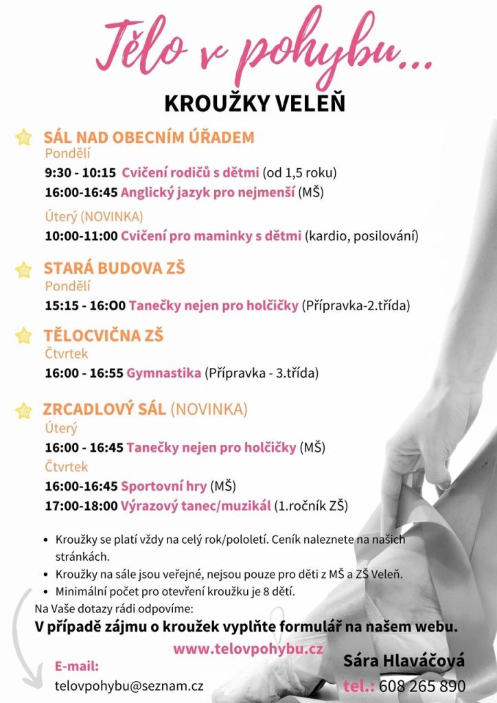 Kroužky na sále jsou veřejné, nejsou pouze pro děti z MŠ a ZŠ Veleň.